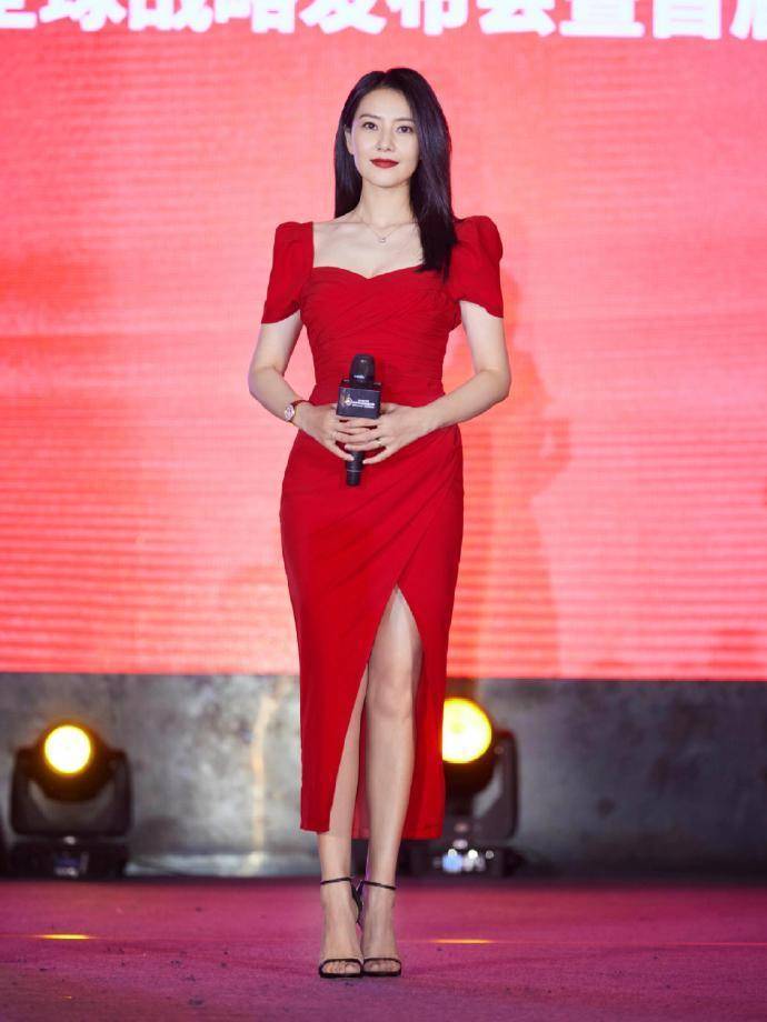 高圆圆酒红开叉礼服配阔腿裤,46岁腰臀比惊艳全场,谁说中年不能辣?